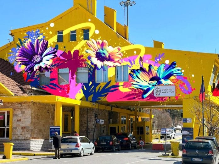 Shkruan Nertil Jole: Maria-Rosa Szychowska është artistja polake, e cila po realizon muralen në fasadën e godinës në pikën kufitare e doganore të Kapshticës e më pas për të vijuar edhe me atë të Qafë Thanës, duke mundësuar një imazh të veçantë për turistët dhe qytetarët që lëvizin në të dy anët e kufirit.