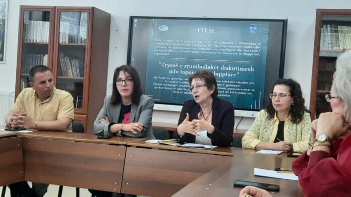 TIRANË, 7 qersHor/ATSH/ Në Universitetin “Fan S.Noli” në Korçë u organizua një tryezë e rrumbullakët diskutimesh mbi toponiminë shqiptare e quajtur “Thirre vendin tënd” ku profesorë të gjuhësisë dhe të letërsisë kumtuan gjetjet e tyre nga ekspeditat në terren.