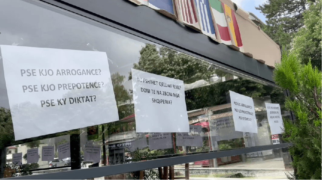 Bizneset e Korçës me pankarta në xhama, “Ku fshihet qëllimi real? Doni të na zboni nga Shqipëria?”