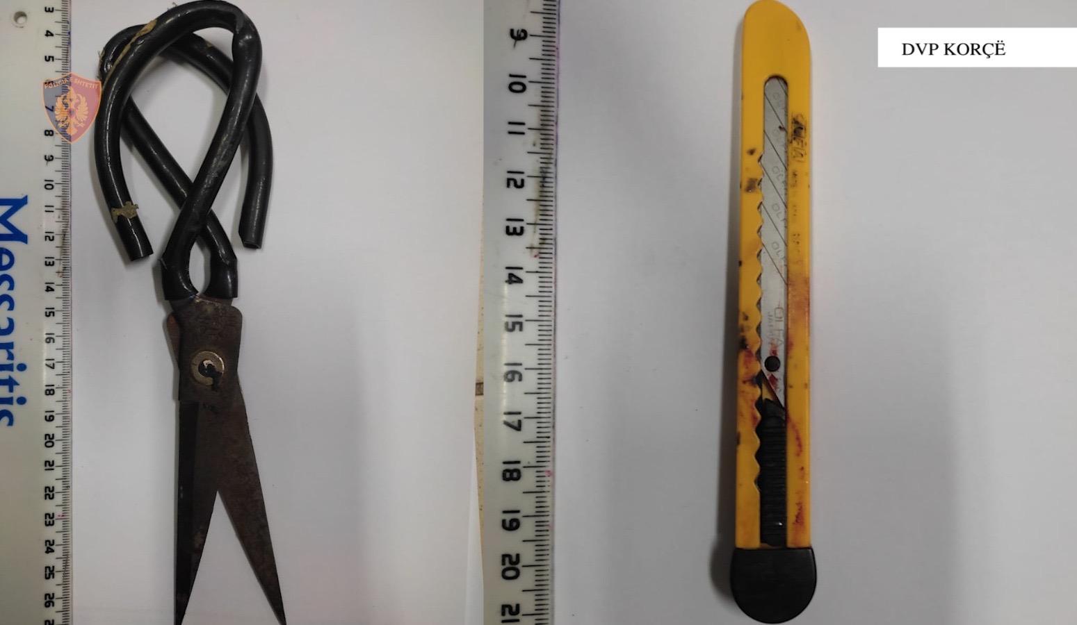 Në cilësinë e provës materiale u sekuestruan automjeti dhe mjetet prerëse (një bisturi-thikë dhe një gërshërë).